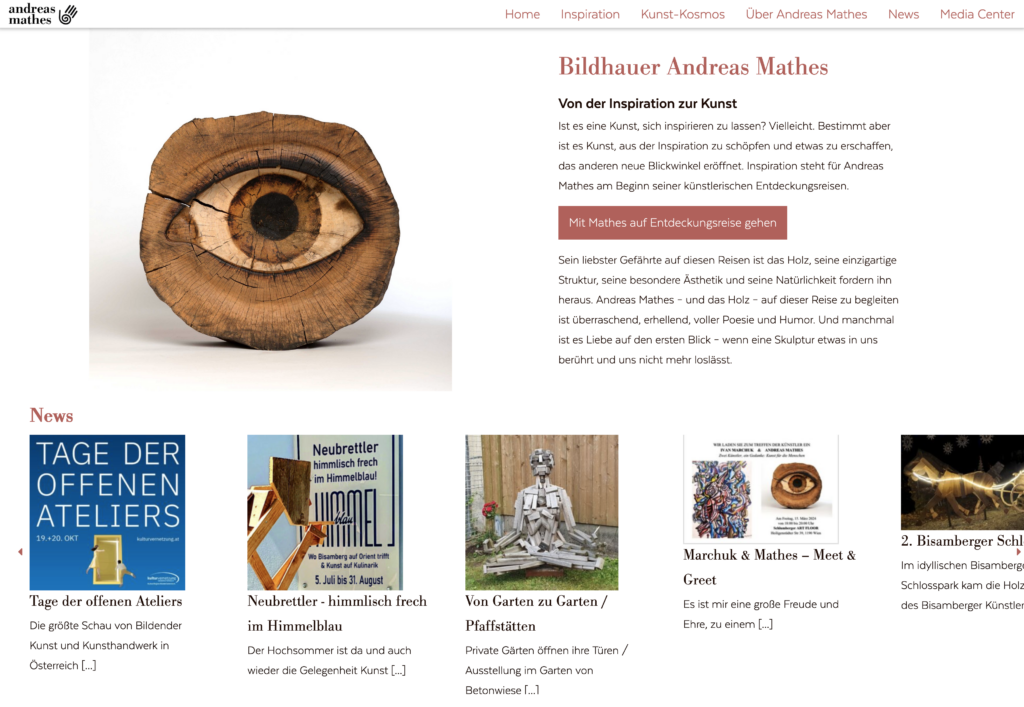 Kunde: Andreas Mathes, Künstler. Partneragentur: Zowack PR Zeitraum: Frühjahr bis Sommer 2021 Hintergrund:Im Frühjahr 2021 trat der Künstler Andreas Mathes, in Zusammenarbeit mit Zowack PR, an uns heran, um seine Online-Präsenz zu modernisieren. Die bisherige Website entsprach nicht mehr den Anforderungen in Bezug auf Design und Benutzerfreundlichkeit. Ziel des Projekts war es, eine ansprechende, moderne Website zu erstellen, die seine